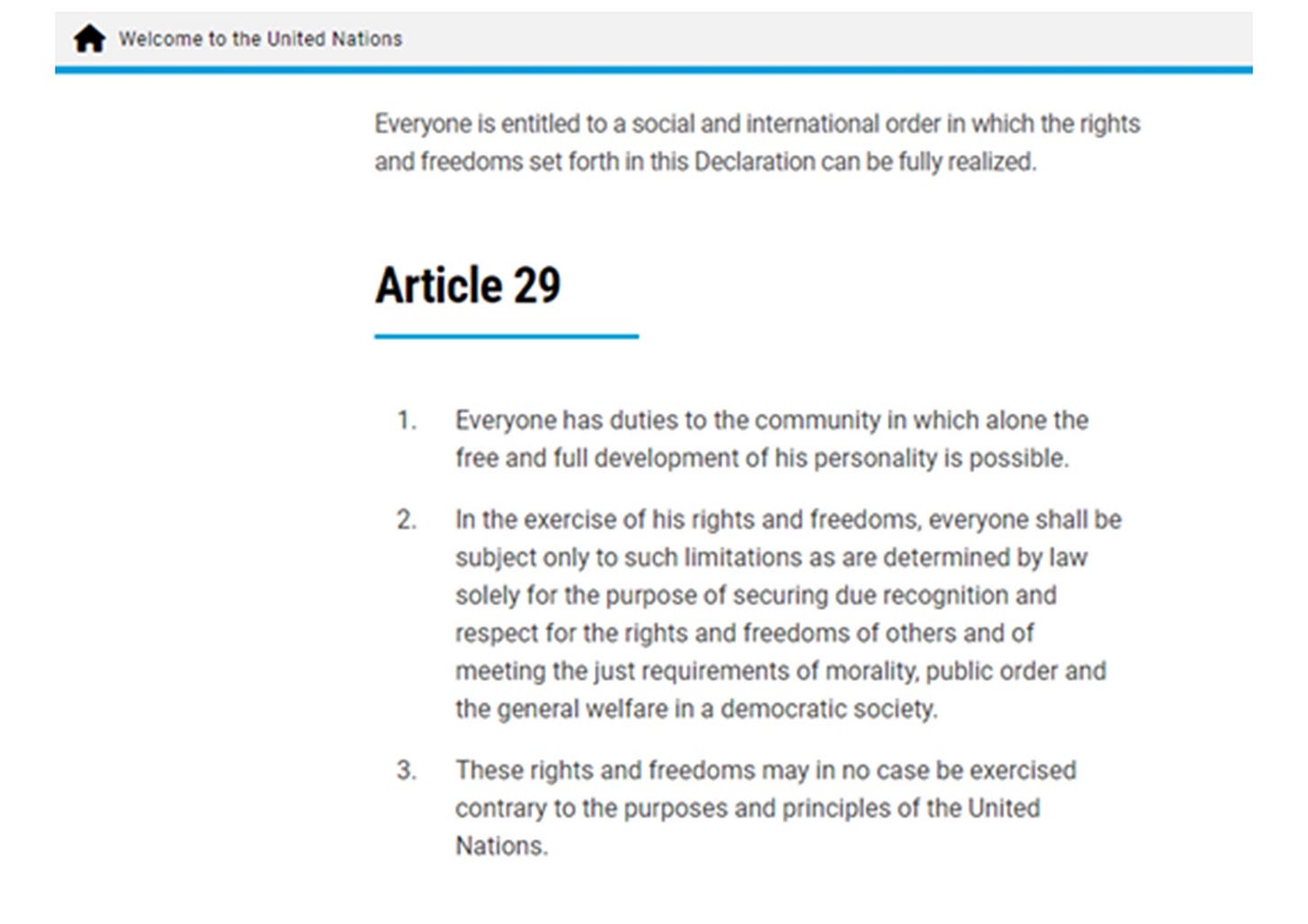 Point 3, is the ultimate get out clause, basically you only have your human rights if you align with wants of the UN. So, your rights come with responsibilities, of which ‘they’ decide.