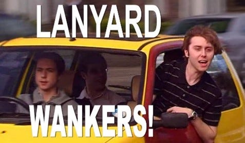 It is guaranteed that you will have several of these in your workplace. They have been indoctrinated to think that a bit of fabric and plastic around everyone’s neck will “keep us all safe!” They get aroused with a small amount of power and the authority. “Where’s your lanyard?” they will scream. These are the same authoritarians who took it upon themselves to become the mask police during COVID - and I had more than a few run-ins with them.